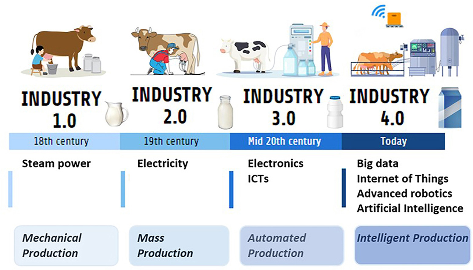 Dairy 4.0 is predominantly supported by robotics, artificial intelligence, the Internet of Things, big data, and blockchain.